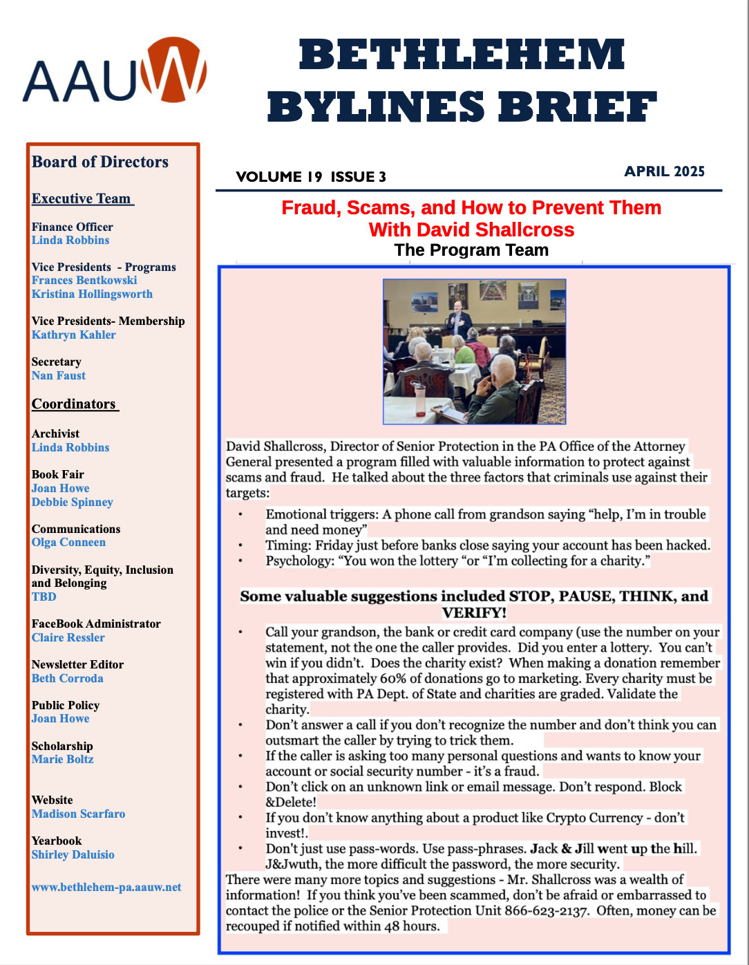 © 2025 AAUW Bethlehem (PA) Branch. All Rights Reserved.